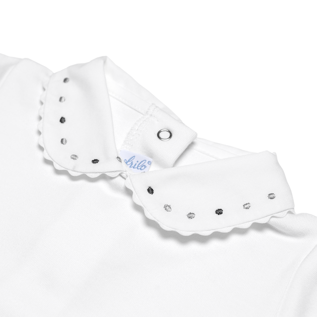 Langarmbody weiss mit Stickerei-Kragen - grau anthrazit