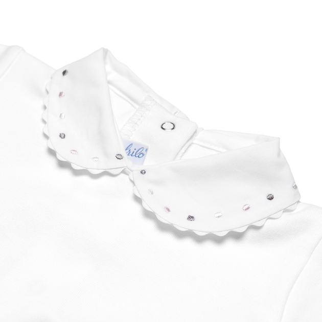 Langarmbody weiss mit Stickerei-Kragen - rosa grau weiss
