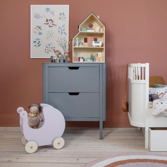 Die Sebra Wickelkommode ist ein elegantes, funktionales 2-in-1-Möbel in dänischem Design, das aus einer Kommode, einer Wickelauflage und entweder zwei Schubladen oder einem Regalboden und Türen besteht und das in Weiß oder Grau erhältlich ist. Die...Regulärer Preis CHF 990.00Schnellansicht -