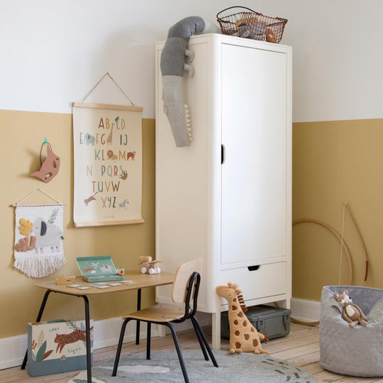 Der Sebra Kleiderschrank ist ein eleganter und funktionaler Kleiderschrank für das Kinderzimmer. Er ist mit einer Schublade, drei Regalen, eine Kleiderstange und jeweils einer oder zwei Türen ausgestattet. Beide Versionen sind in weiß erhältlich. Der Kleiderschrank...Regulärer Preis CHF 1,050.00Schnellansicht -