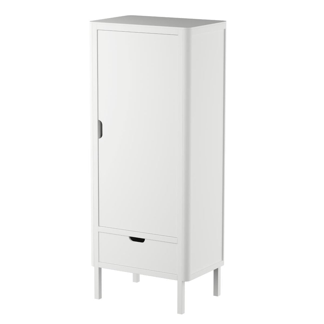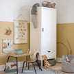 The Sebra wardrobe is an elegant and functional wardrobe for a child's room. It features one drawer, three shelves, a clothes rail, and one or two doors. Both versions are available in white.