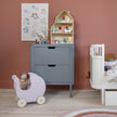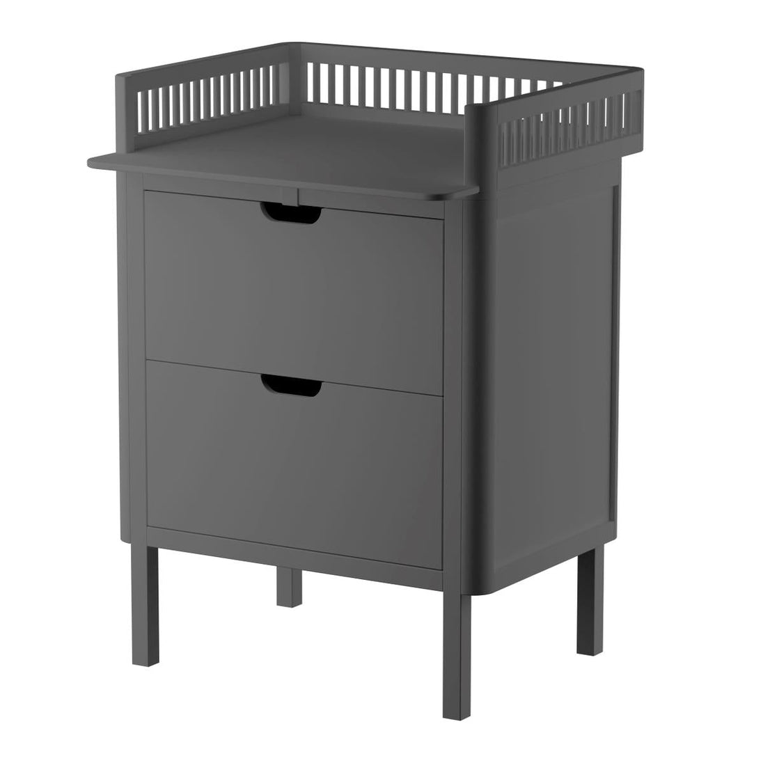 The Sebra changing table is an elegant, functional 2-in-1 piece of furniture in Danish design, consisting of a chest of drawers, a changing mat and either two drawers or a shelf and doors, and is available in white or grey.