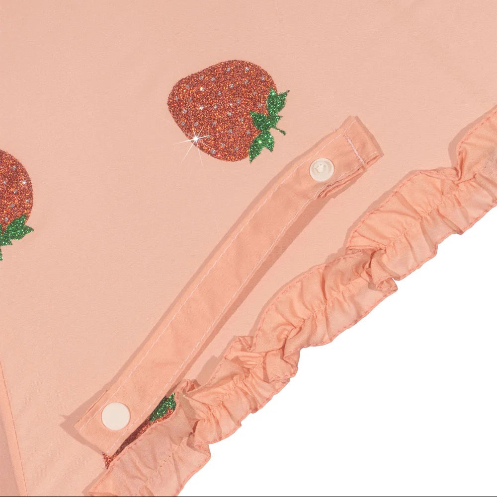 Parapluie à volants pour les jours de pluie. Avec un cadre robuste et une poignée en forme de J pour une manipulation facile. Fermeture pratique sans pincement. Le parapluie a des bords lisses, est facile à ouvrir et à fermer et a juste la bonne taille pour les petites mains.