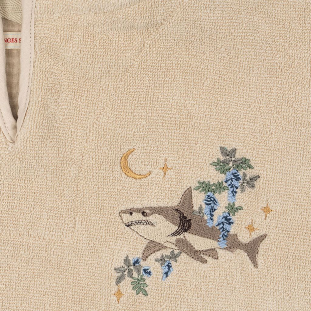 Poncho doux avec capuche. Avec broderie décorative au dos.